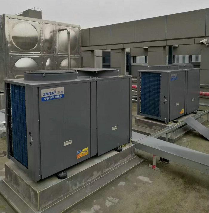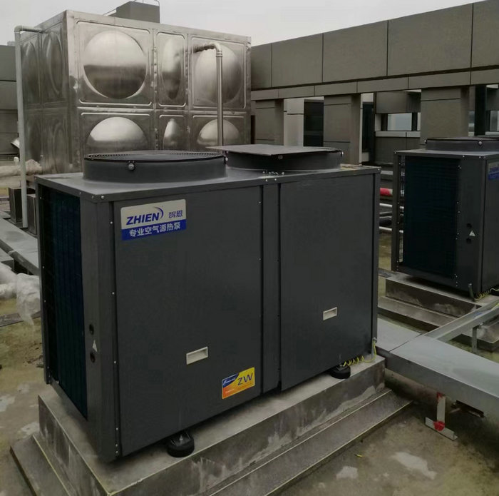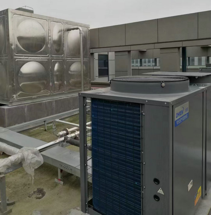 杭州三墩公交停保基地生活用水午夜成人AVAPP,采用了午夜精品在线视频观看商用午夜性爱福利热泵热水机10匹机两台+15吨不锈钢方形水箱(3*2.5*2)