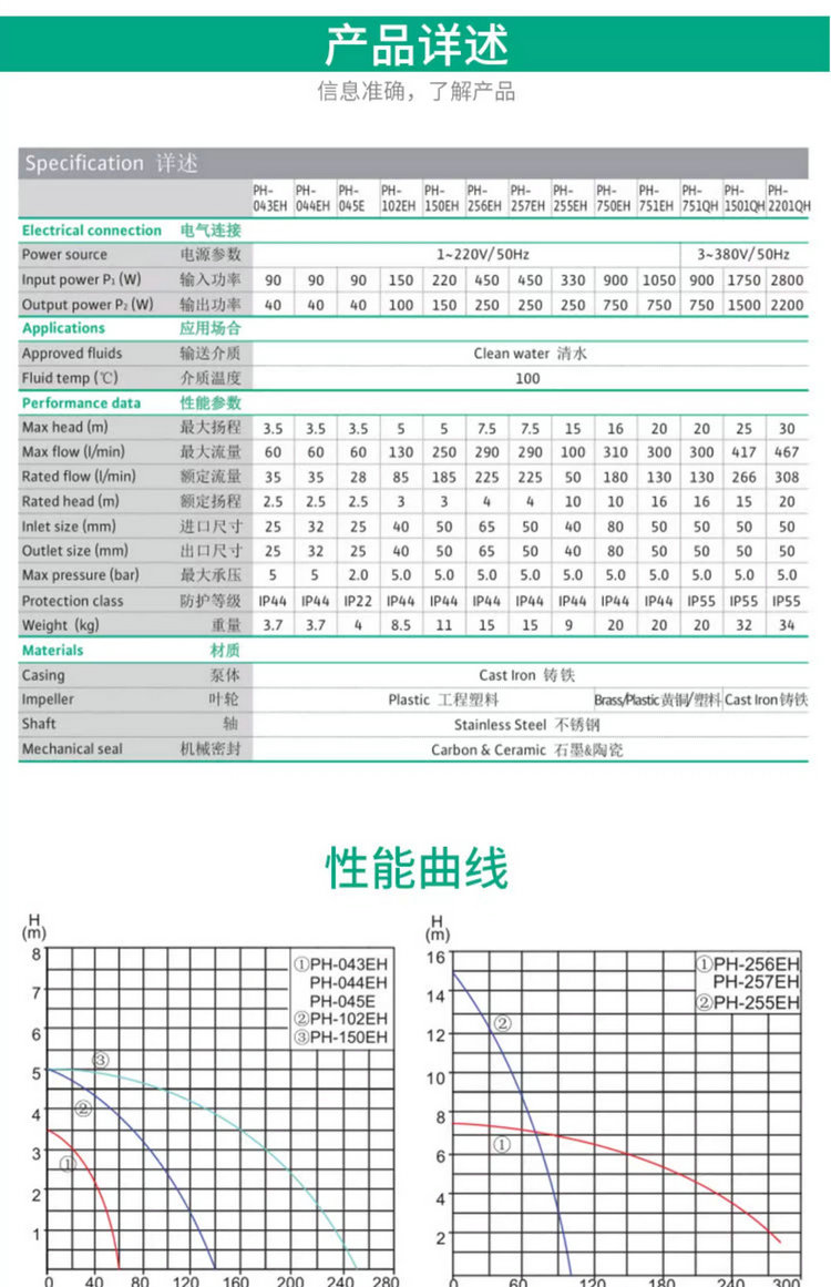 威乐热水循环泵PH-043EH、PH-044EH、PH-045EH